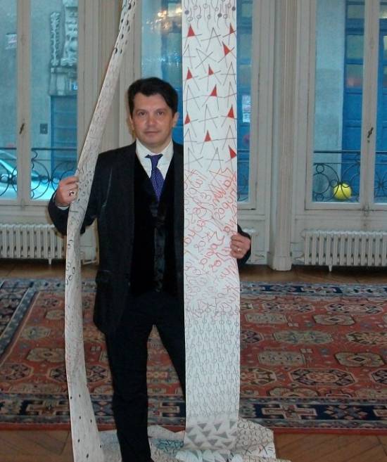 Βασικό συνθετικό στοιχείο αυτού του έργου τα επιζωγραφισμένα με σύμβολα ρολά τηλετύπων του καλλιτέχνη, τα οποία μετά την πρό διετίας ανάρτηση τους στην τιμητική έκθεση που έγινε στο LA MAISON DE LA GRECE στο Παρίσι, με την αιγίδα της Ελληνικής Πρεσβείας στη Γαλλία, ενεργοποιούνται και πάλι διαχρονικά στη διαμόρφωση ενός υποβλητικού έργου, αφιερωμένο στην "ιδεολογική και διαπροσωπική έρημο της εποχής μας".