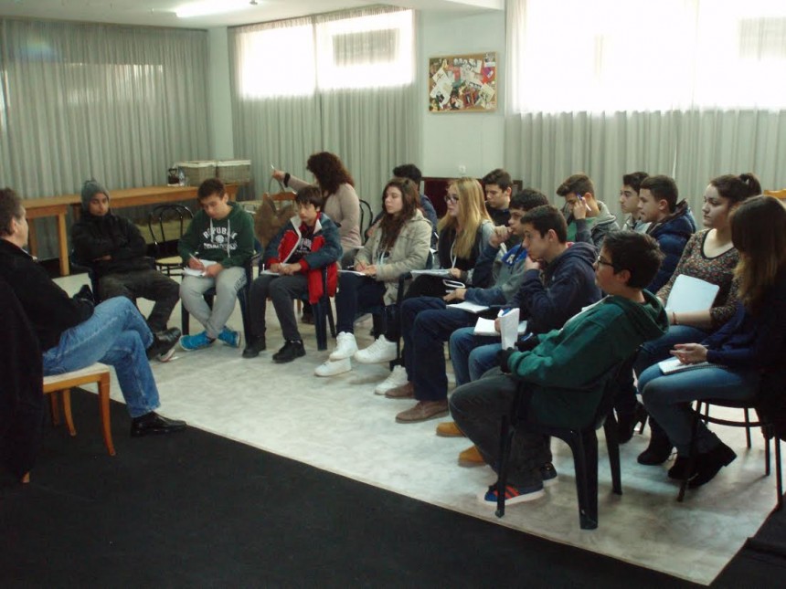 Οι μαθητές ενημερώθηκαν για τις δραστηριότητες του συλλόγου, άκουσαν μια σύντομη ομιλία του σκηνοθέτη γύρω από το θέατρο και συνομίλησαν για θέματα που αφορούν το μάθημα τους που έχει σχέση με την τέχνη του Θεάτρου.