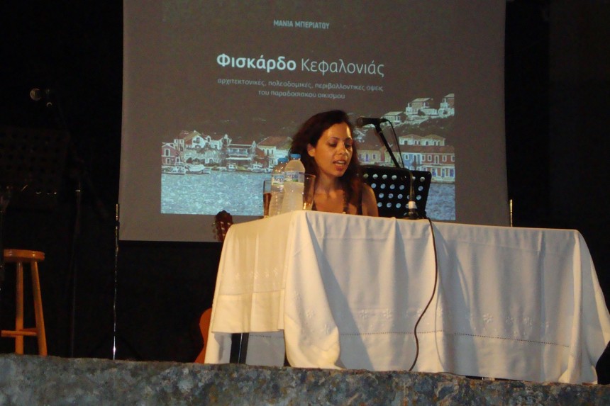 Τέλος, η συγγραφέας Μάνια Μπεριάτου αφού ευχαρίστησε τους παρευρισκόμενους αναφέρθηκε, μεταξύ άλλων, στην επιτόπια έρευνά της στις διάφορες εποχές του χρόνου από την οποία απέκτησε βιωματική σχέση με το Φισκάρδο, καθώς και στον προβληματισμό για την λεπτή ισορροπία και σύζευξη που πρέπει να υπάρχει ανάμεσα στην διατήρηση και ανάδειξη της ιστορική κληρονομιάς με σεβασμό στο πνεύμα της παράδοσης και στην αναπόφευκτη πρόοδο και εξέλιξη των σημερινών συνθηκών ζωής.
