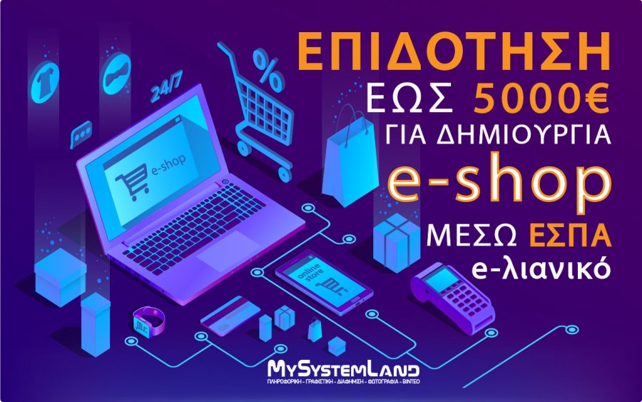 Στις 05.04.2021 λήγει η υποβολή αίτησης για την κατασκευή e-shop μέσω της 100% επιδότησης από το ΕΣΠΑ (μετά από την παράταση που έλαβε) και η MySystemLand μπορεί να κάνει την αίτηση για λογαριασμό όσων προλαβαίνουν ακόμη.