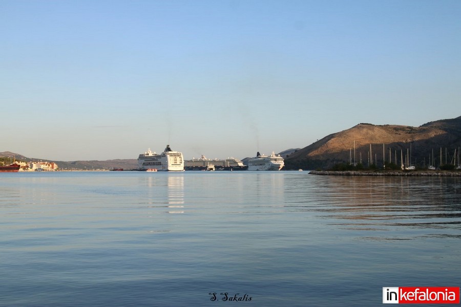 Τριπλέτα κρουαζιεροπλοίων σήμερα στο Αργοστόλι (εικόνες)